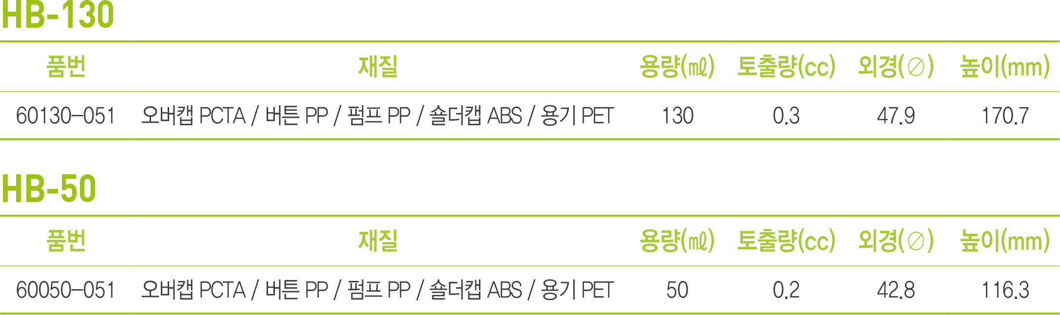 HB-50, HB-130 제품입니다.
